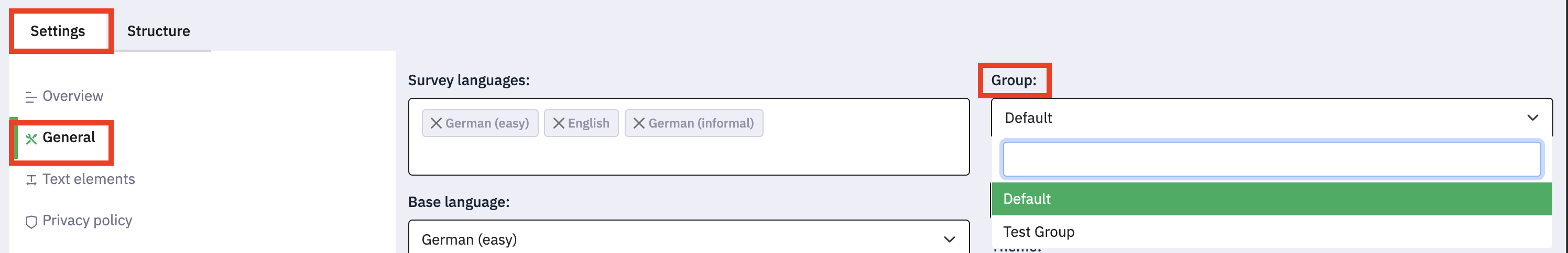 (1) Go to the General settings tab of a survey.